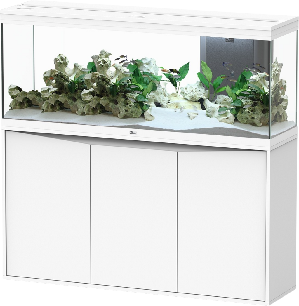 Az Aquatlantis Splendid Ultra 300 akváriumkombinációja egy modern összeállítás, amely kiváló minőségű alumínium profilokkal és színben összehangolt alsó szekrényekkel rendelkezik. Az akvárium és a stílusos alsó szekrény mellett a szett tartalmaz egy komplett LED világítási rendszert RGBW technológiával, egy Biobox belső szűrőrendszert környezetbarát szűrőbetétekkel, egy fűtőtestet, egy szivattyút és az ORI Smart Controllert az okostelefonon keresztüli egyszerű vezérléshez.