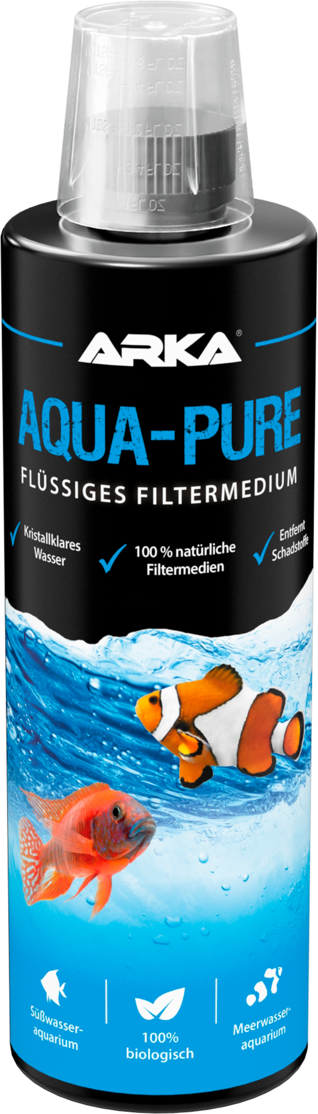 Az ARKA Aqua-Pure kristálytiszta akváriumvizet biztosít. A hasznos baktériumkultúrák speciálisan kifejlesztett keveréke tiszta édes- és tengervizes akváriumról gondoskodik. Különösen alkalmas minden tenger és édesvizes akvárium karbantartására és probléma esetén történő alkalmazáshoz.