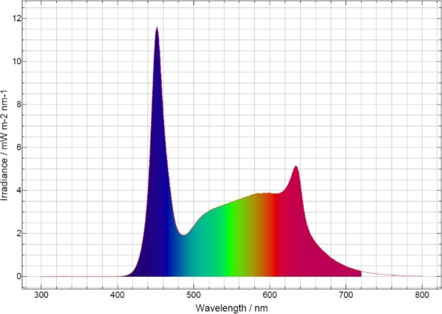 • PAR (fotoszintetikus aktív sugárzás): 4,50 μmol/s/watt
