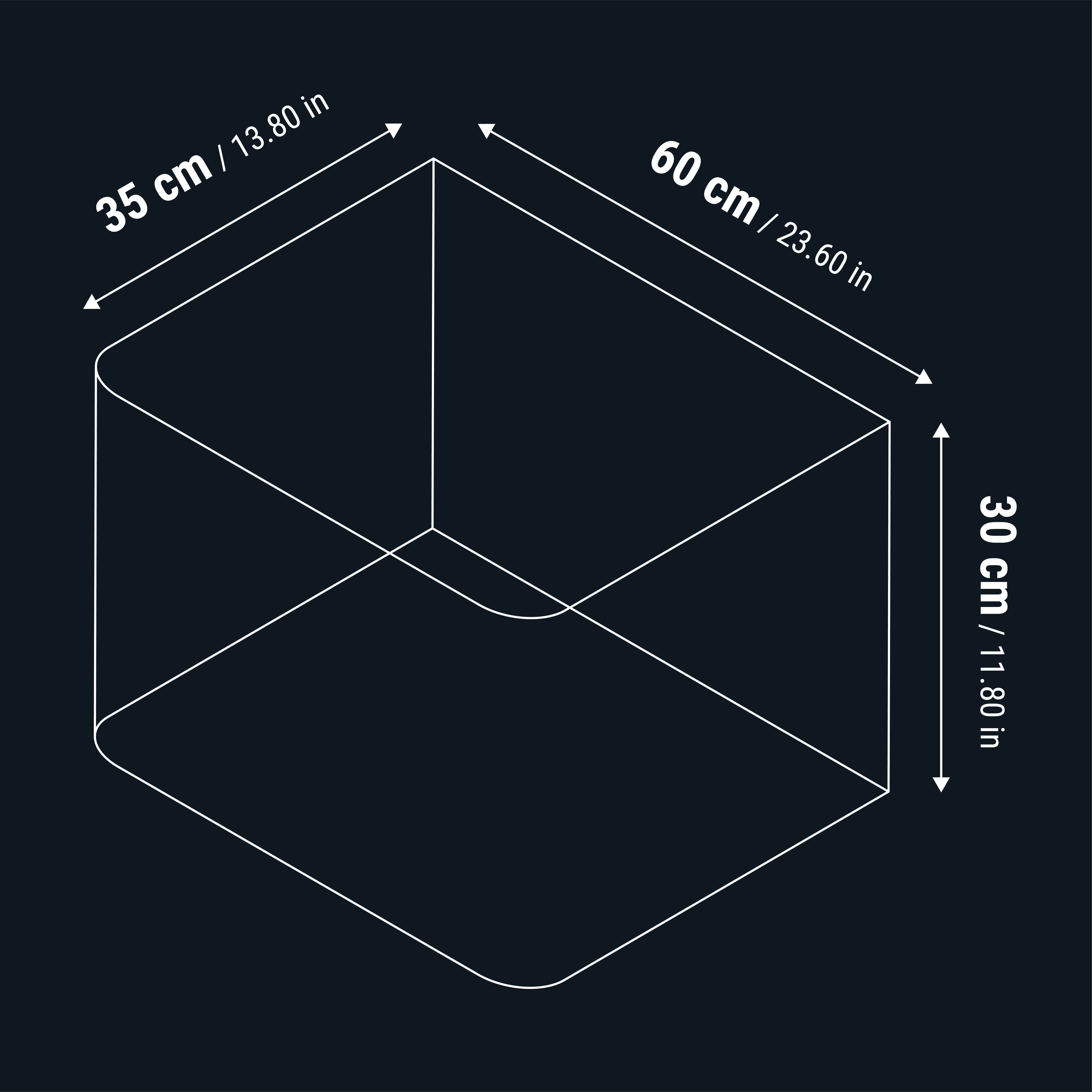 - 60 liter: 35 x 60 x 30 cm