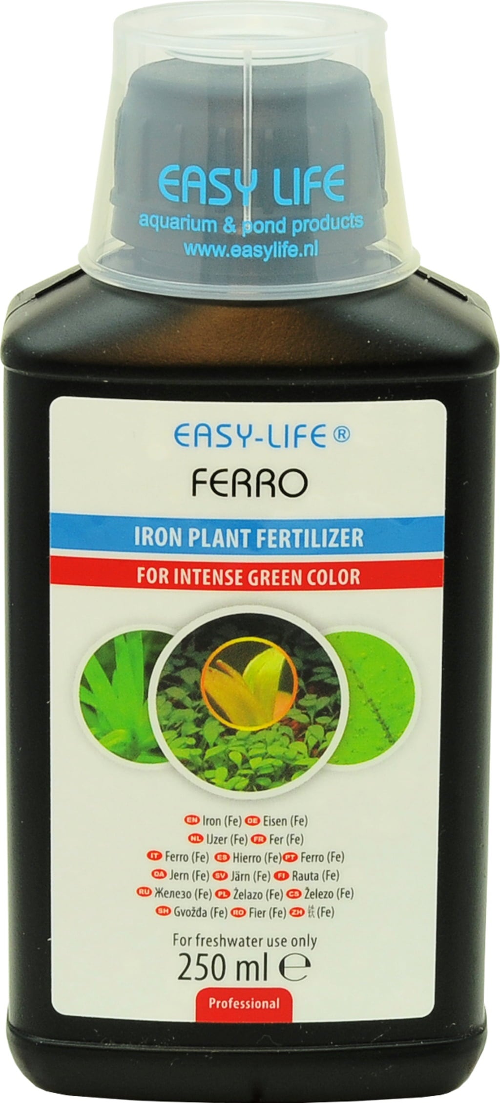 Az Easy-Life Ferro könnyen felszívódó vasat biztosít a vízi növények számára. A vas fontos a levelek jó fejlődéséhez, illetve a klorofill termelése révén biztosítja a növény zöld színét.