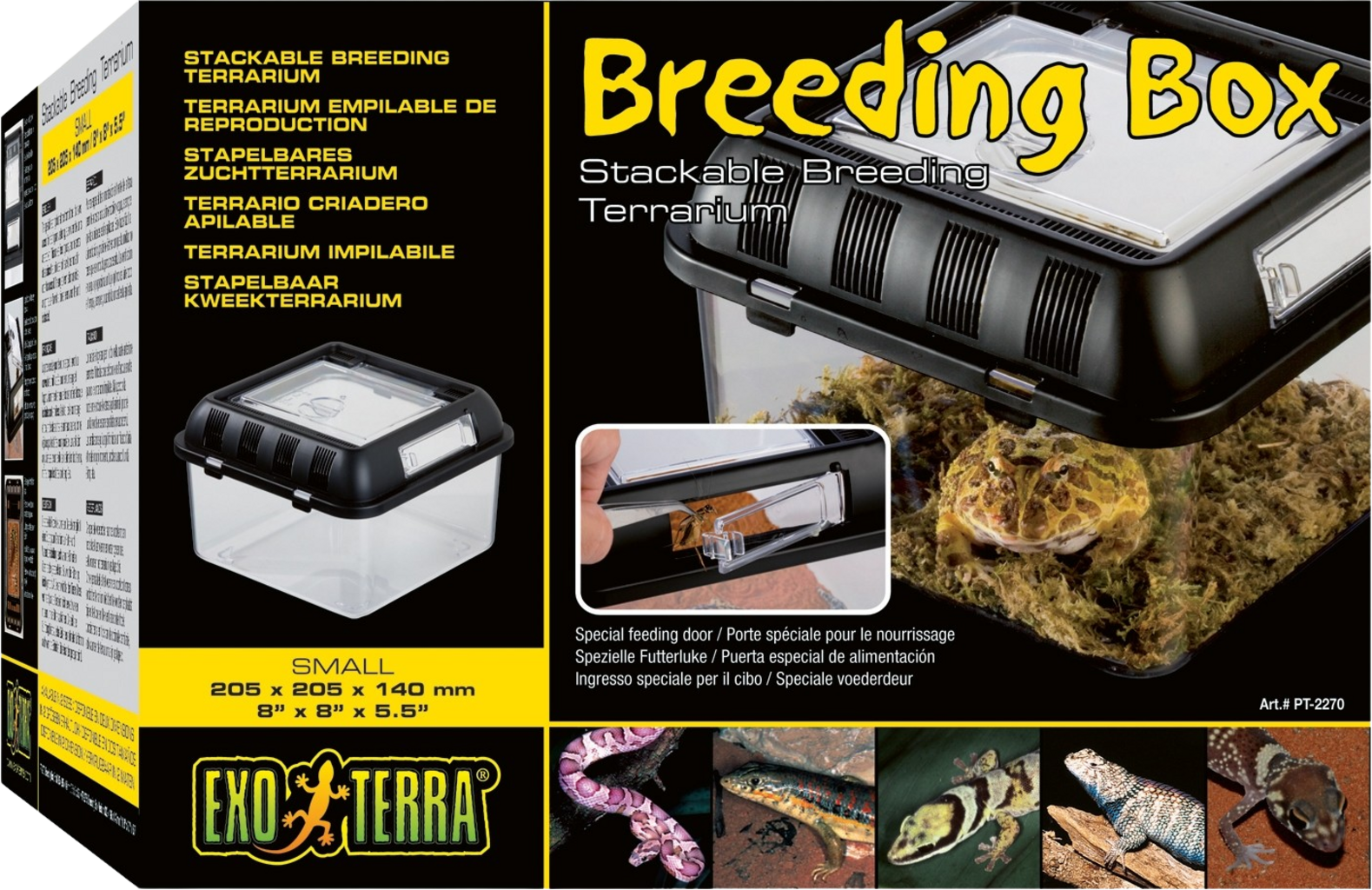 A műanyagból készült Exo Terra Breeding Box egy átlátszó terrárium terráriumi állatok szállítására vagy élő élelmiszer tárolására. Az egymásra rakható terrárium ideális hüllők és egyéb kisállatok számára.