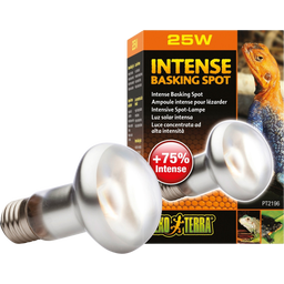 Az Exo Terra Intense Basking Spot egy melegítő spotlámpa, amelyet egy speciális meleg hely létrehozására terveztek. A fénysugár akár 35%-kal több hőt és fényt termel, mint a hagyományos lámpák, még az izzó és a meleg hely közötti nagyobb távolság esetén is. Az UVA-sugarak segítenek szabályozni az állatok testhőmérsékletét.