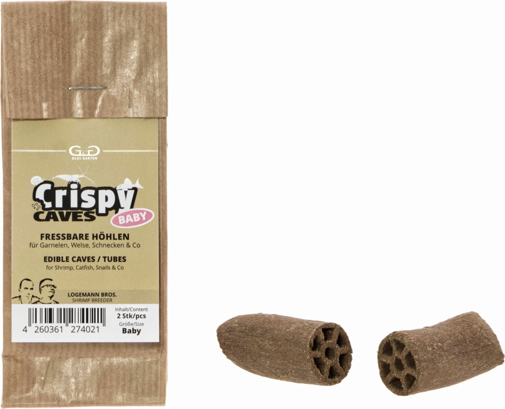 Úgy néznek ki, mint a csövek, hasonlítanak egy természetes dekorációra, azonban tökéletesen finomak! Az ehető Crispy Caves egy olyan tápkiegészítő, amely ideálisan megfelel a garnélák, a harcsák, a csigák és a rákok igényeinek. A finom rudak fő alkotóelemei, a farostok, az agyag és levelek, amelyek az állatok természetes környezetében is megtalálhatók. A 100%-ban természetes nyersanyagokból készült stick támogatja a természetes biofilm megerősítését, illetve fontos ballasztanyagokhoz juttatja az állatait. Az állatok a csövek segítségével fontos tápanyagokat vehetnek fel az algákból és baktériumokból.