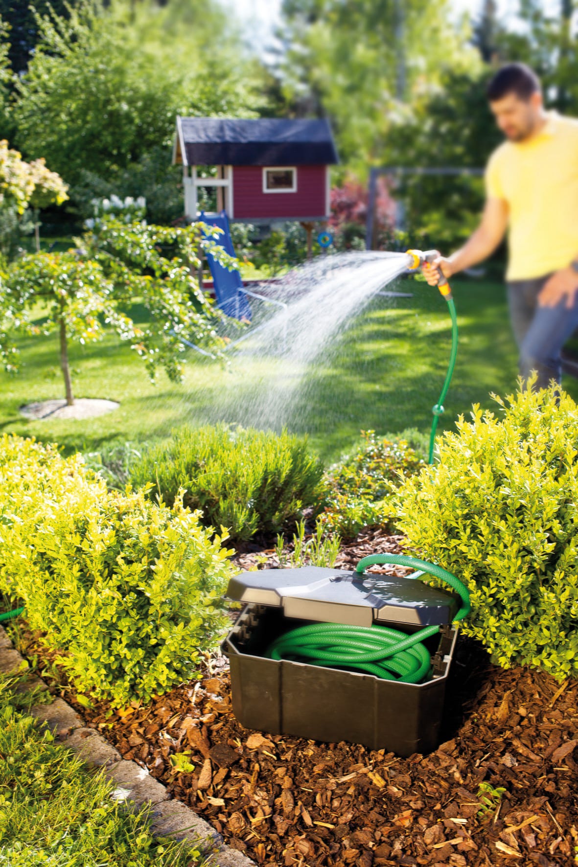 A HEISSNER kerti kábeldoboz központi, időjárásálló állomásként szolgál az elosztók, időkapcsolók vagy rádióvevők tiszta és rendszerezett elhelyezéséhez kültéren. Az IP64 fröccsenő víz elleni védelemmel ellátott doboz a kábelátvezetéseknél speciális tömítésekkel rendelkezik, és megbízhatóan védi az érzékeny elektronikát a nedvességtől és a szennyeződésektől. A robusztus ház gyerekbiztos módon lezárható, a kert esztétikus megjelenése érdekében pedig szinte teljesen a talajba süllyeszthető.