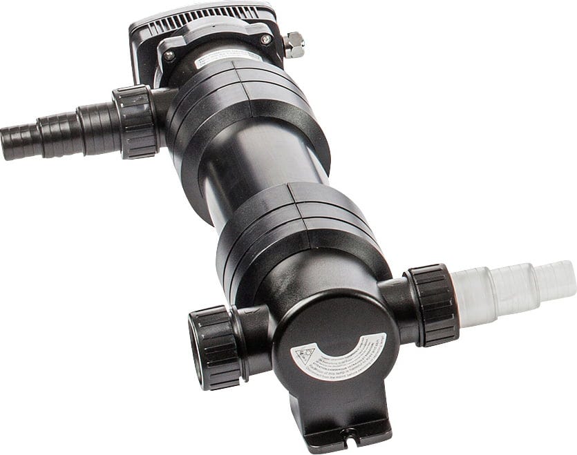 A készülék forgó vízelvezetéssel működik, amelyet mágnesezés támogat, hogy biztosítsa a víz optimális tartózkodási idejét a sugárzási tartományban. Ez különösen hatékonyan csökkenti a csíraszámot és csomósítja össze a lebegő algákat. A működés ellenőrzésére egy átlátszó házrész szolgál, amely lehetővé teszi a fényforrás közvetlen szemrevételezését a készülék felnyitása nélkül.