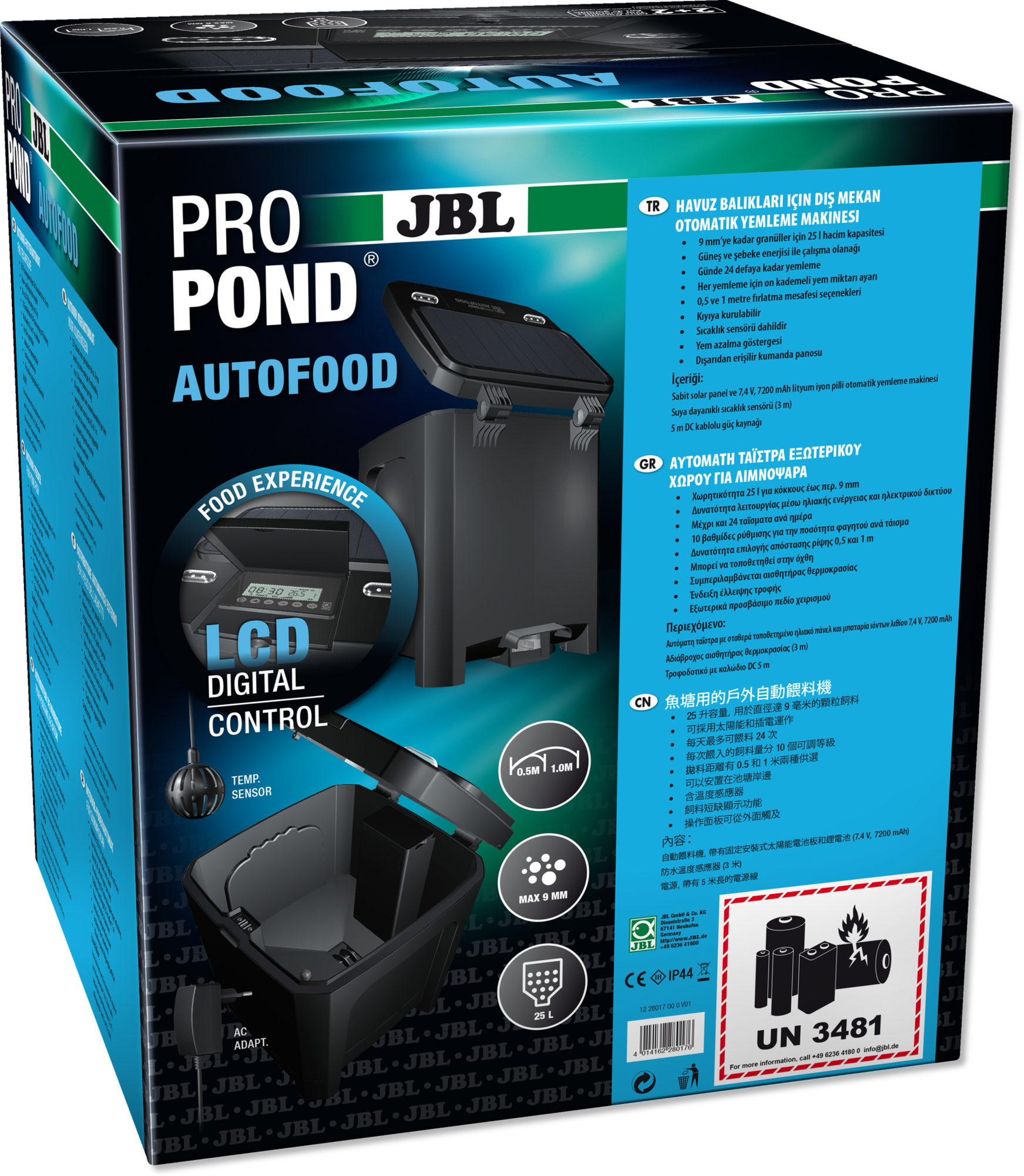A JBL ProPond AutoFood teljesen időjárás- és esőálló.