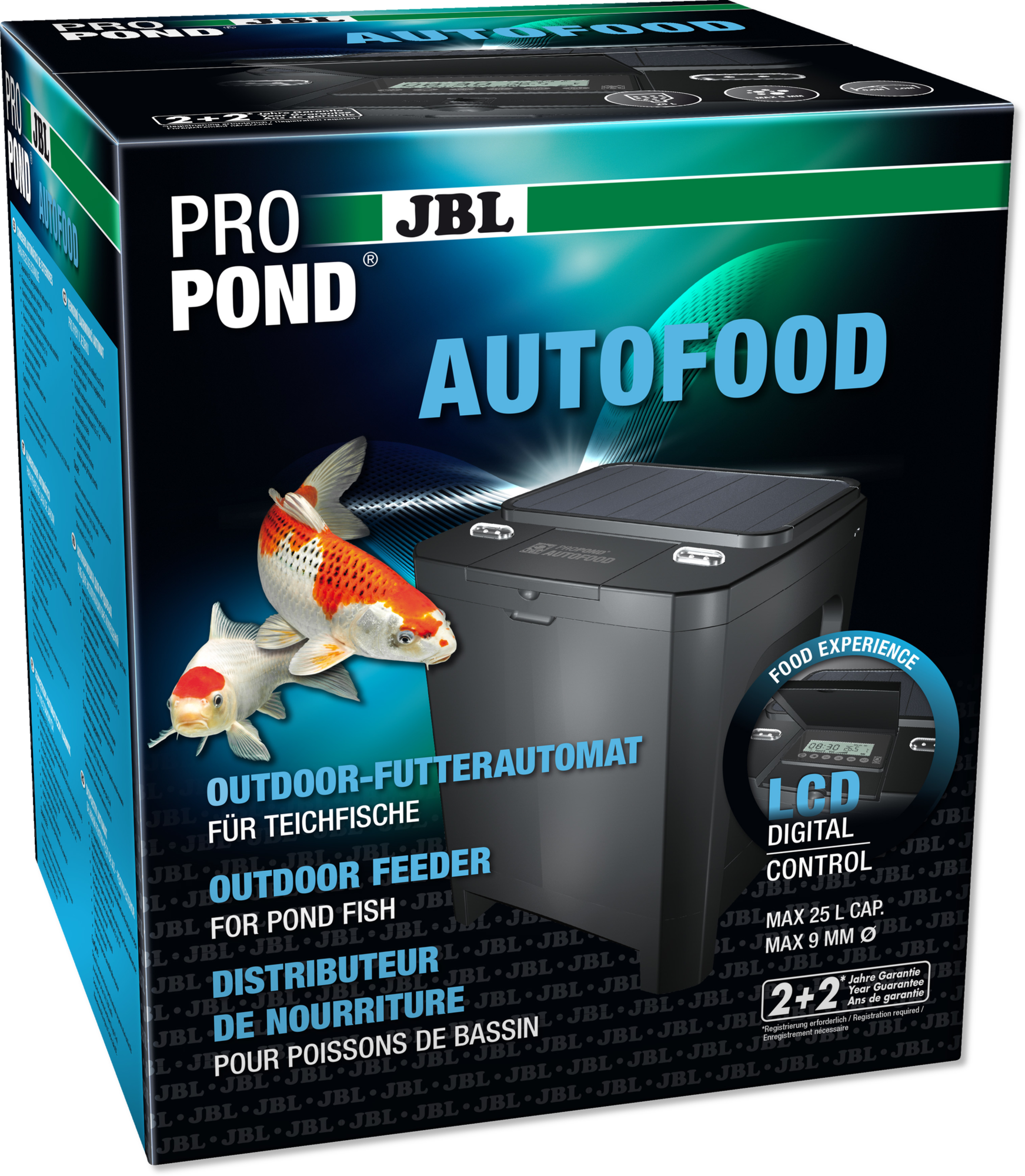 A JBL automata tápadagoló tavi halak számára számos előnyt biztosít: ha nyaralni vagy hétvégi kirándulásra utazik, a tavi halakat megbízhatóan láthatja el táplálékkal. Ön dönti el, hogy a JBL tápadagoló mikor és mennyi táplálékkal lássa el a halakat. A beállított programot azonban bármikor figyelmen kívül hagyhatja, és manuálisan elkezdheti az etetést. A választható eldobási távolság gondoskodik arról, hogy a kicsit kisebb vagy gyengébb tavi halak is táplálékhoz jussanak.