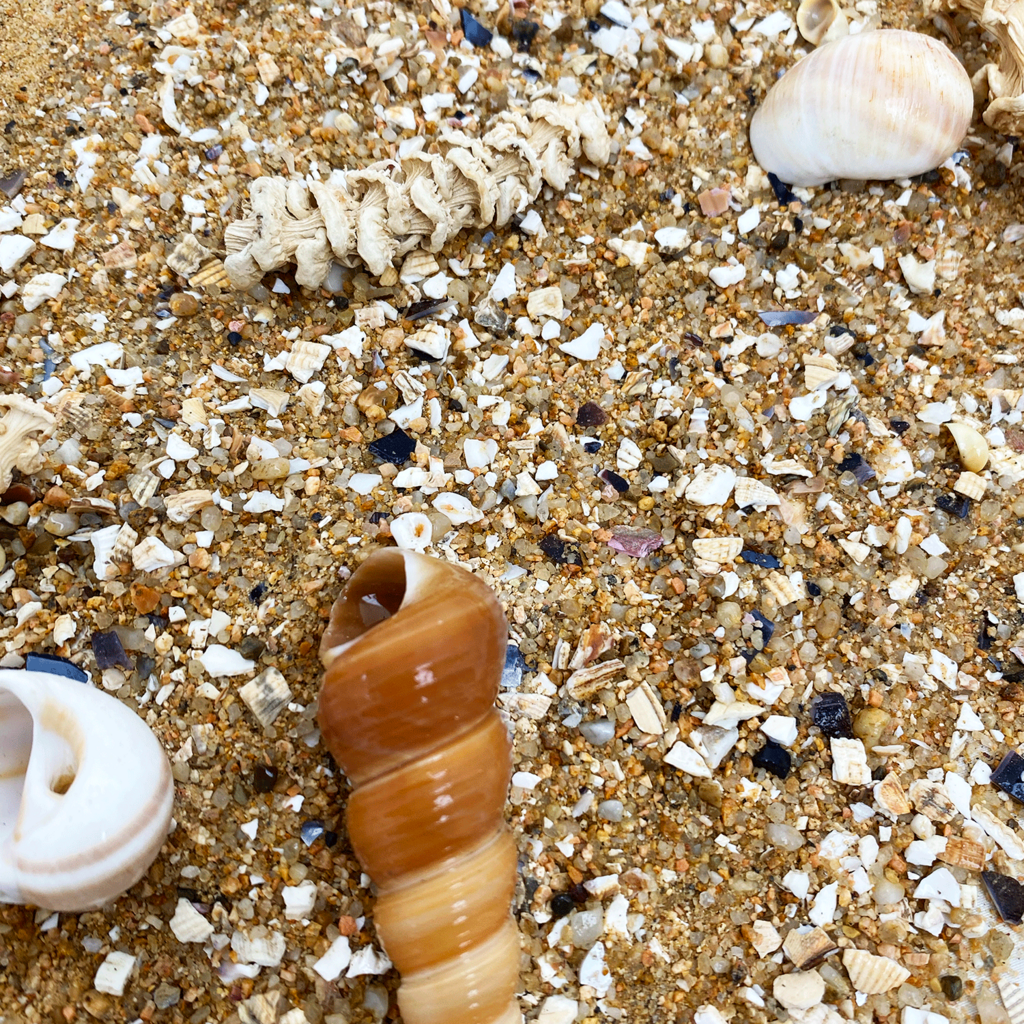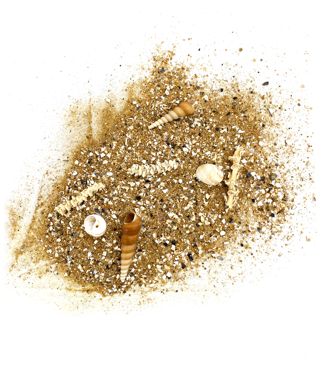 - Homokszemcsék, csigaházak és zúzott kagylók keveréke