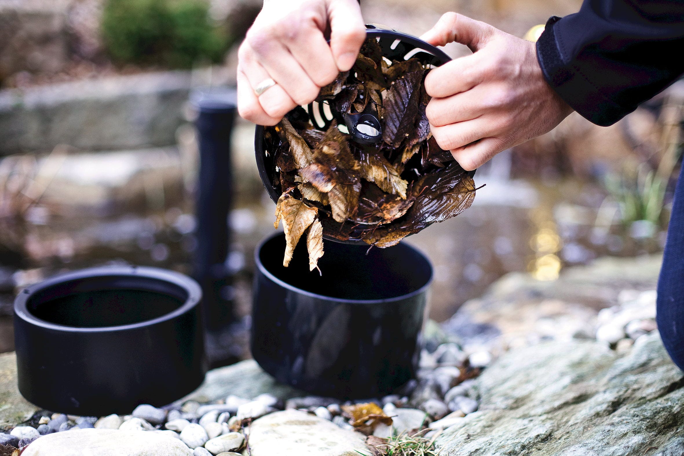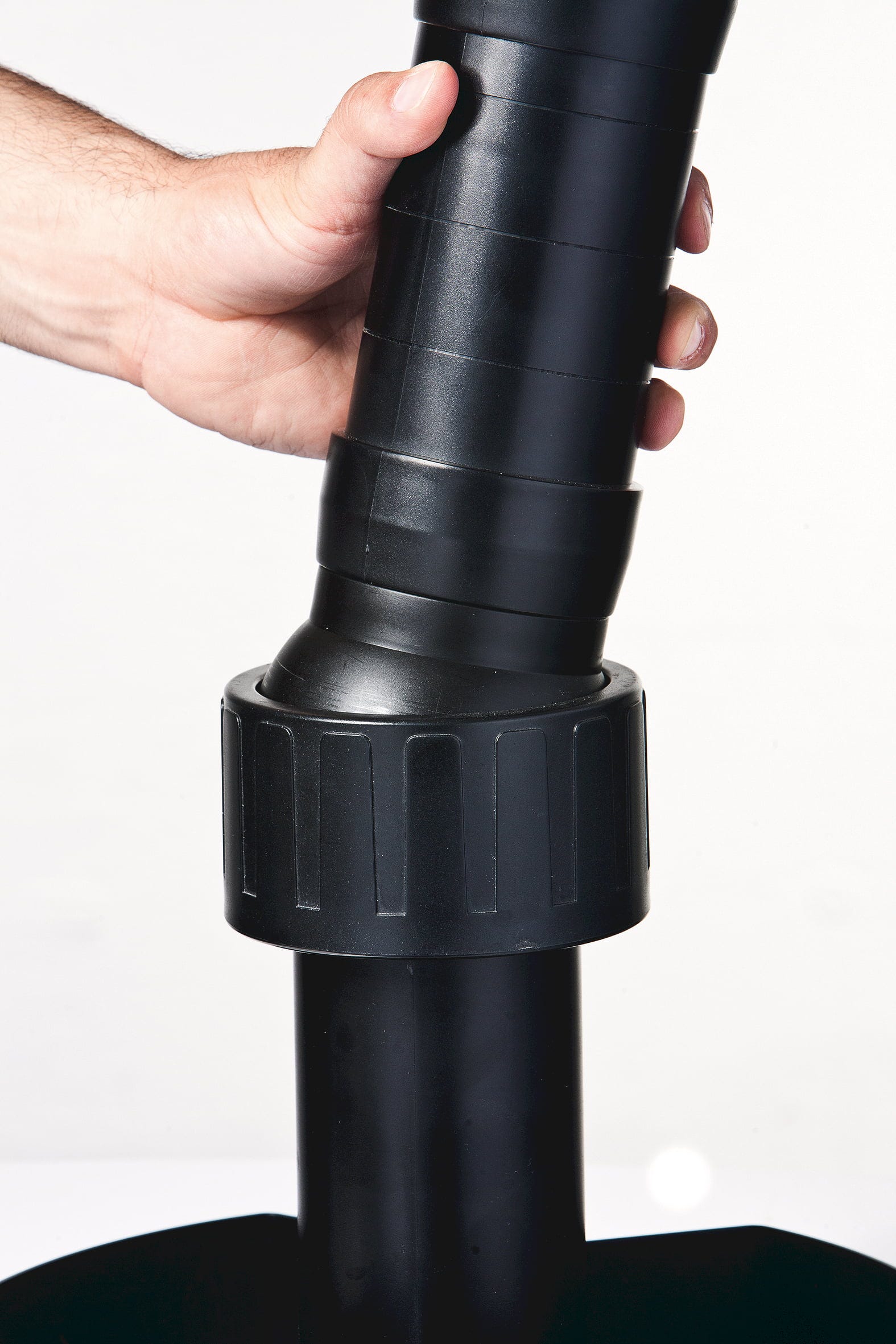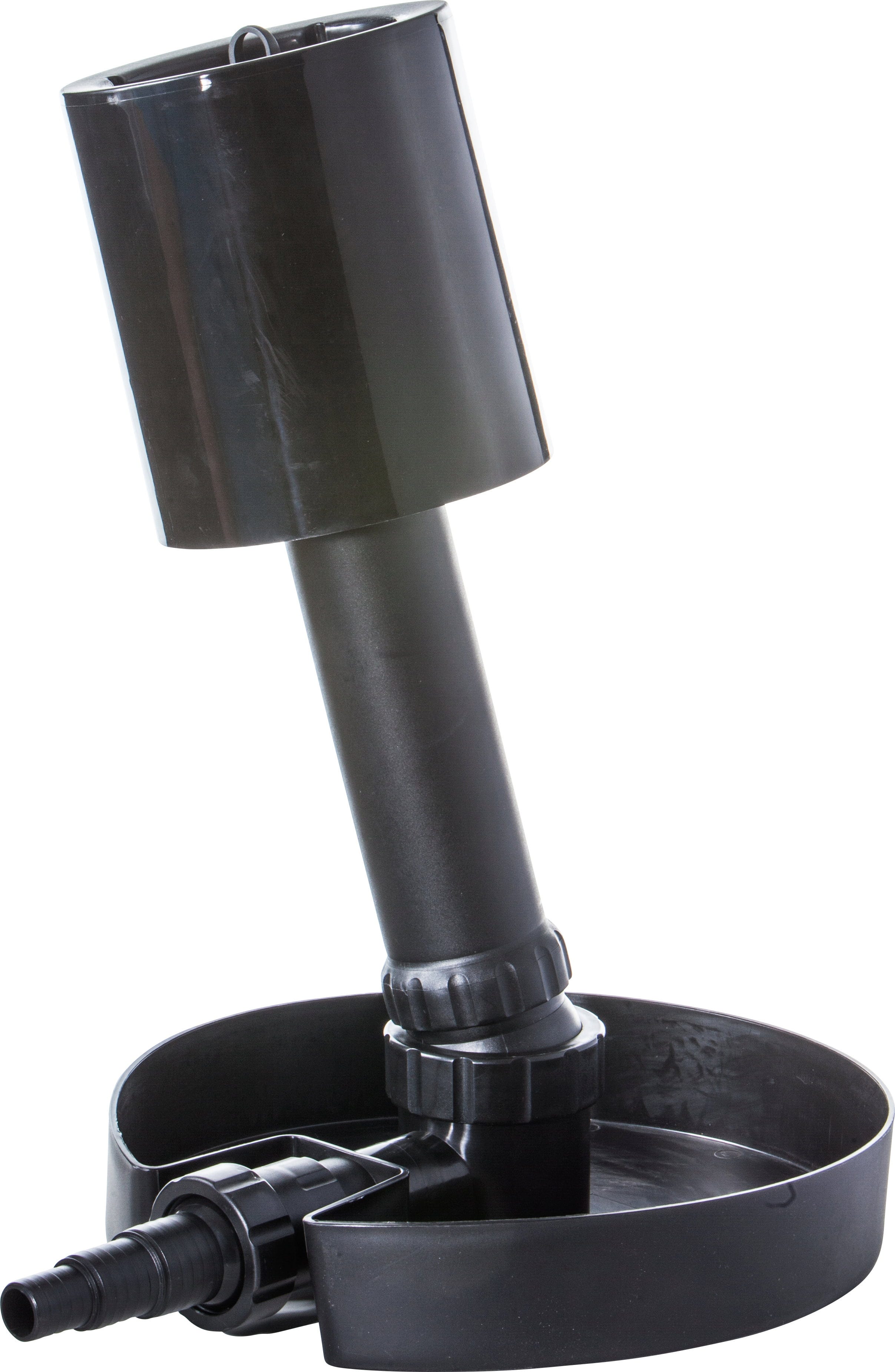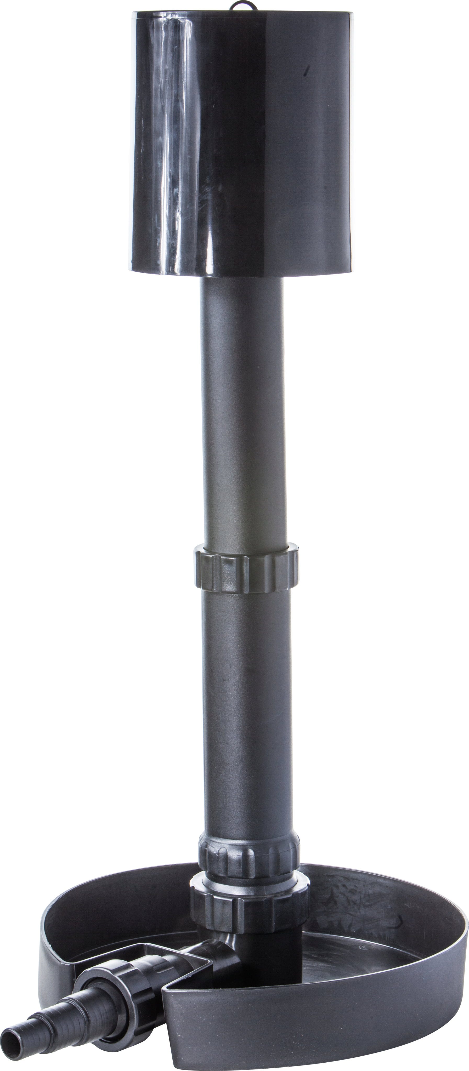 A stabil rögzítésről a beépített talplemez gondoskodik, amely egyszerűen megtölthető kövekkel, így biztonságosan elnehezdik a tó fenekén. A teleszkópos cső rugalmasan a vízszinthez igazítható és optimálisan beállítható, így a szívóhatás pontosan ott keletkezik, ahol szükség van rá.