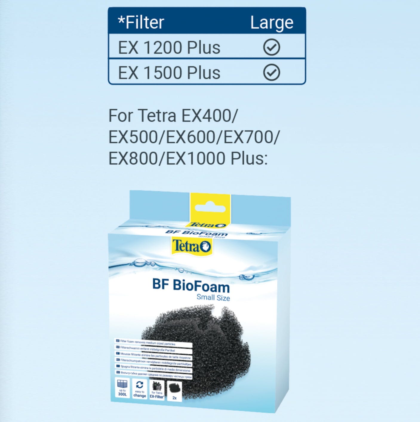 A Tetra 400/600/800/1000/1200 Biológiai szűrőszivacs egy kiegészítő szűrőközeg a Tetra EX 400-1200 külső szűrőhöz.