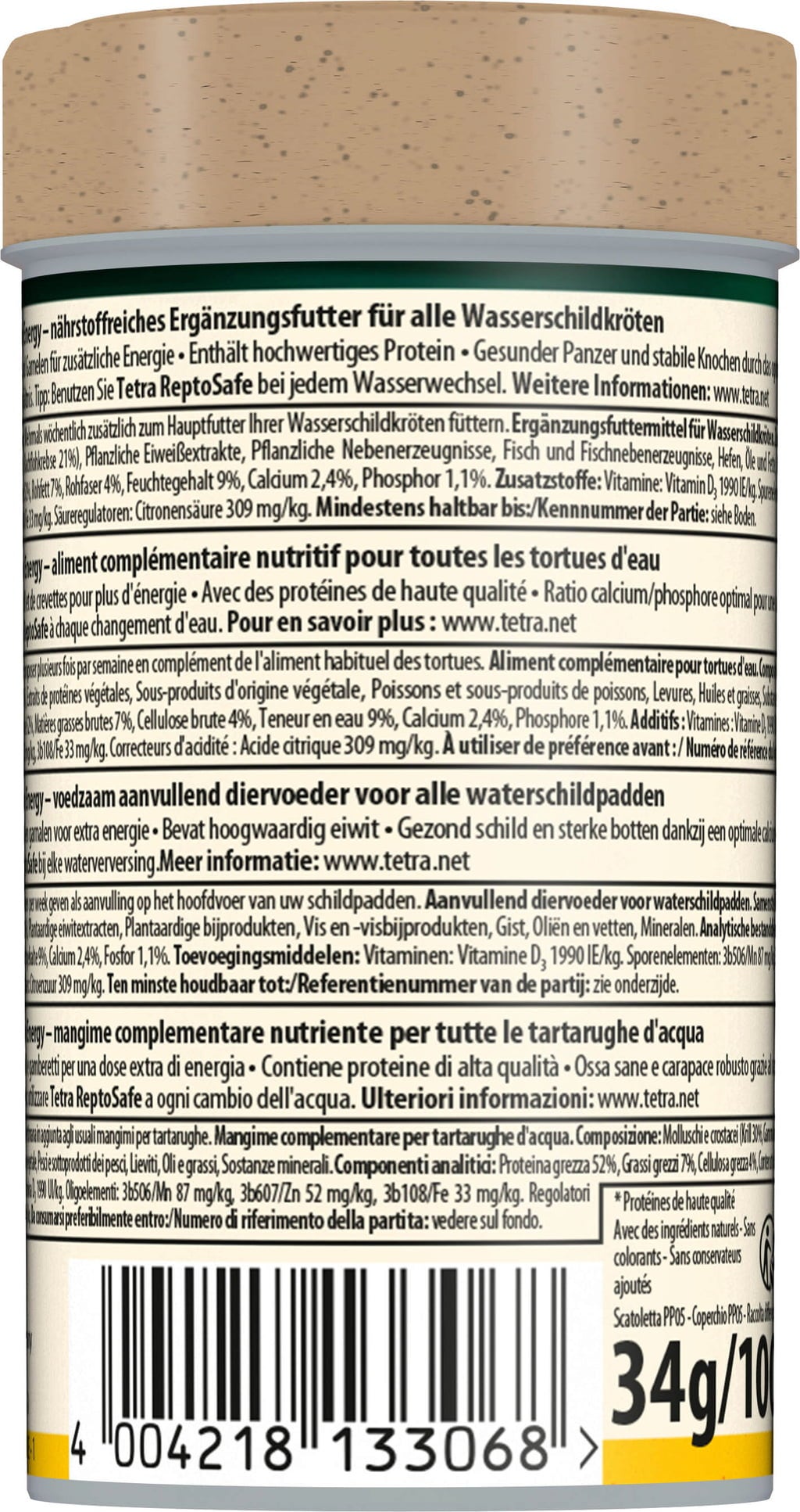 A garnélarák és krill magas aránya miatt a Tetra ReptoMin Energy különösen gazdag omega-3 zsírsavakban, így támogatja a normál anyagcserét és a normálisan működő immunrendszert.