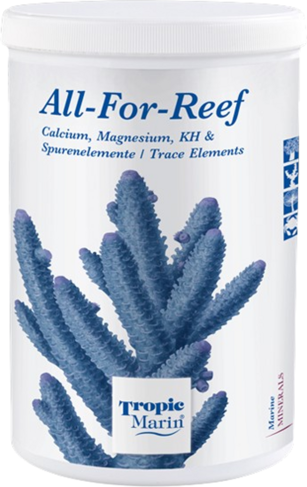 A Tropic Marin All for Reef por az ásványi anyagok rendkívül koncentrált keveréke. Ha a keveréket fordított ozmózisos vízben feloldja, a zátony-akváriumokat minden szükséges ásványi anyaggal és nyomelemekkel láthatja el - beállított koncentrációban. Az oldat különösen alkalmas újonnan betelepített, közepes lakottsággal rendelkező zátony-akváriumokhoz.